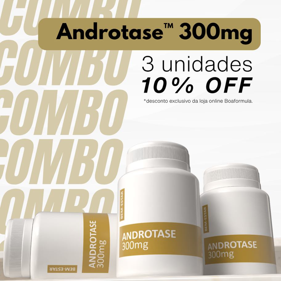 Com o Combo Androtase™ 300mg, você garante 3 unidades com 10% OFF na loja online Boaformula, assegurando o tratamento completo para 3 meses de equilíbrio e resultados contínuos.